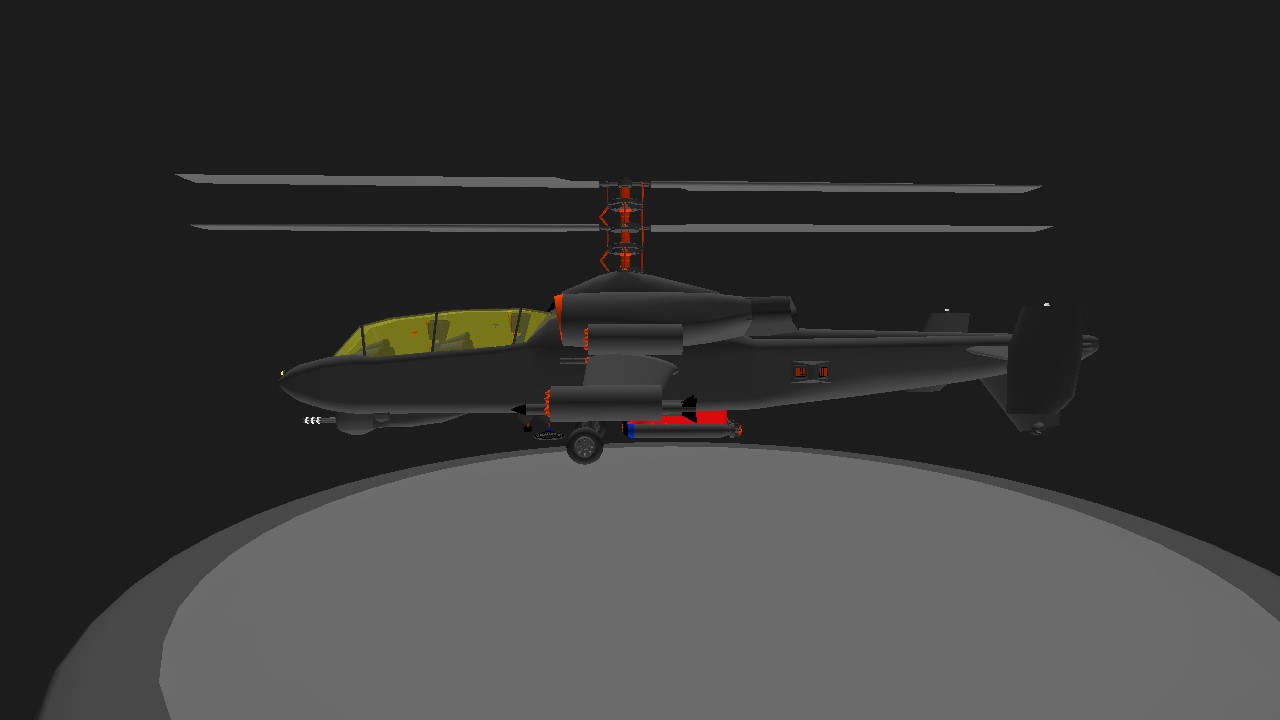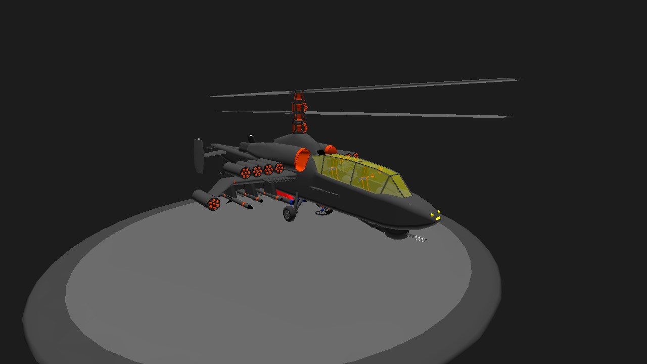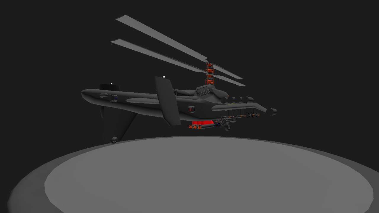 Hello everyone, I'm Lord Debarjya Sarkar, Lord of NHTHREEEMPIRE. Today, let me introduce you to NHTHREEEMPIRE 's first helicopter, VX-HCM War Protector. It is a modified version of @Morsele 's "Sokolov So-68 Gargulya". It is a coaxial rotor heavy attack helicopter designed mainly to combat against all kinds of ground targets, which includes Naval ships and submarines, and also specific land enemy targets. Its coaxial rotor system allows for high maneuverability and thrust-to-weight ratio, while a large-area wing reduces the load on the rotors. It is equipped with 4 Inferno Air To Ground Missiles, 10 Rocket Missile Pods, each containing 7 Rocket Missiles, so total having 70 Rocket Missiles, 3 Super Fast Torpedoes, 2 Interceptor Air To Air Missiles and the last but not least, a powerful Minigun System comprising an A10 Warthog style Minigun and 10-14 Wing guns which all total produce a linear barrage of firing ammo to wipe out enemies easily. This helicopter is designed to be an Anti-submarine naval helicopter inspired from the Apache Helicopter, ground support helicopter inspired from the A10 Warthog which also inspired the front portion of the helicopter. It is also the hybrid version of AH-56 & AH-1W as well as the KA-52. The VX-HCM War Protector is designed with a max speed of around 300+ Km/hr and a fast climbing rate of 50-100 Km/hr or 14-28 m/s. It is equipped with Radar Absorption Capabilities with an efficiency of 85-95% as well as Advanced Countermeasure Dispenser Systems with huge amounts of Chaffs/Flares for maximum defence. Other than Military capabilities, it is capable of Search and Rescue Missions, and also Relief Aid Missions. This helicopter is equipped with two Winches, one for supplying liquid cargo or fuel and another for loading and unloading solid cargo and people which includes both civilians and military personnel. Now, for the Activation Groups, AG1 - Stabilizer, AG2 - Lights, AG3 - Inferno Round 1 Fire Salvo, AG4 - Inferno Round 2 Fire Salvo, AG5 - Interceptor Round 1 Fire Salvo, AG6 - Parachutes, Trim Up - Rescue Line, Trim Down - Fuel Supply Line. For Instructions on how to fly this helicopter, Step 1:- Throttle at 100%. Step 2:- Activate AG1. Step 3:- VTOL Up. Step 4:- Pitch Up or Down for Movements and Yaw for Sideways Movements. Thank You.