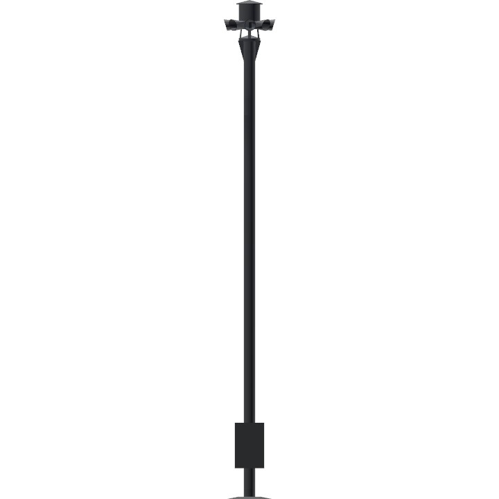Like all of Sentry Siren's models, Model 3V8 has a basic design. The 8-port single-tone rotor and stator (no other port configuration is available), heavily inspired by the Sterling Siren Model M, are placed above a 6-legged intake assembly with a cone at the center of the base to project the sound from the intake outwards. The siren is driven by a 5 hp 208-230/460 V AC 1/3 ph motor above the rotor and stator. Model 3V8 sirens with 1 ph motors use a centrifugal regenerative brake that slows the rotor down rapidly when it reaches a low enough rpm to recharge the motor's capacitor.1 ph units can be distinguished from 3 ph units by the taller motor enclosure. The motor is placed inside a cylindrical weatherproof vented enclosure above the siren.