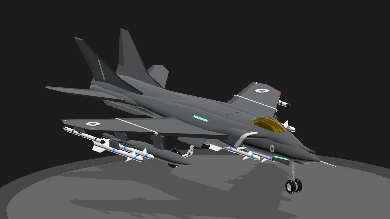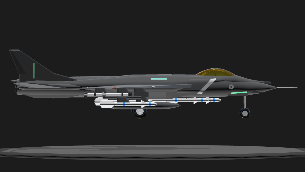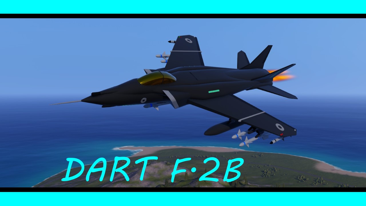 The Dart F.2B is a new variant of the Dart F.2. This jet is equipped with new improved missiles. BlueFlash long range Missiles and DarkKnight medium range Missiles. The body and flight performance is slightly larger and different with more fuel.