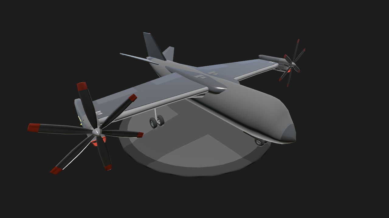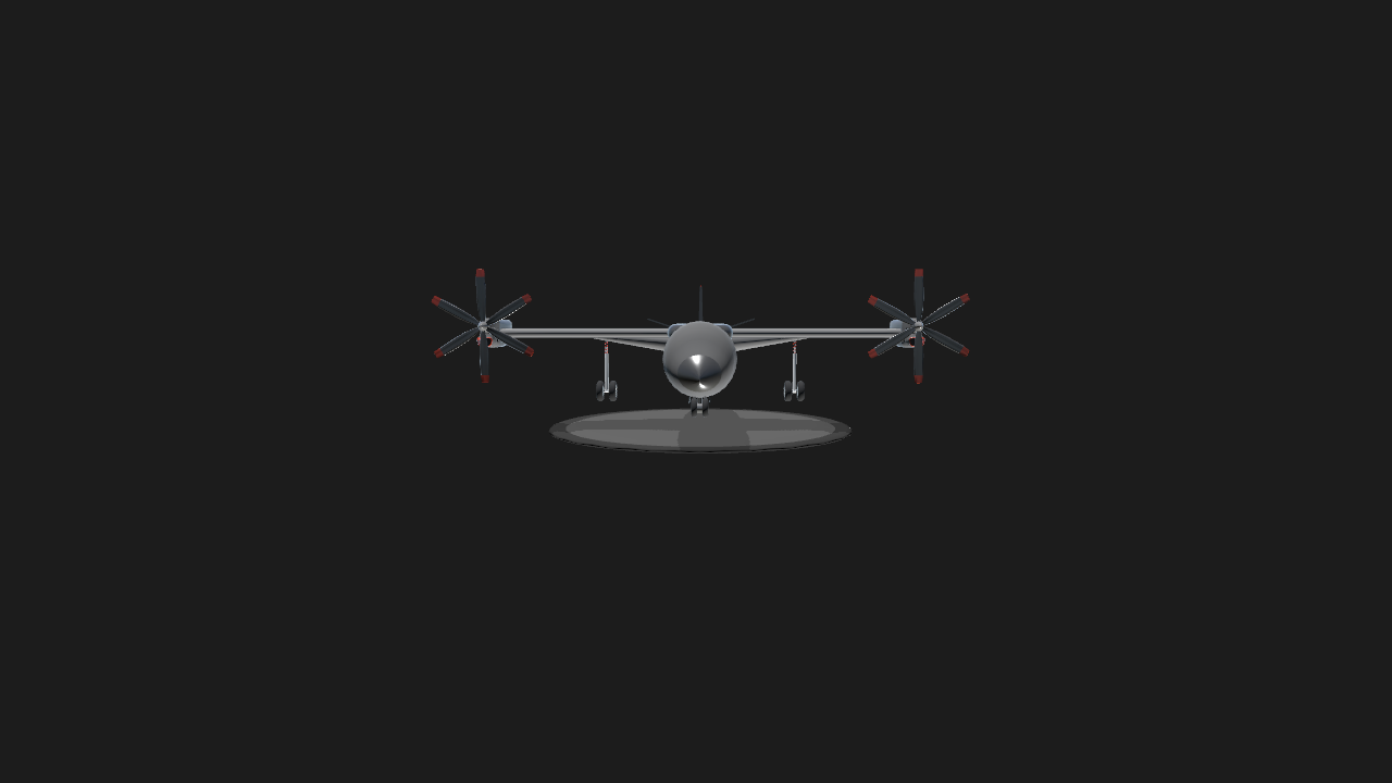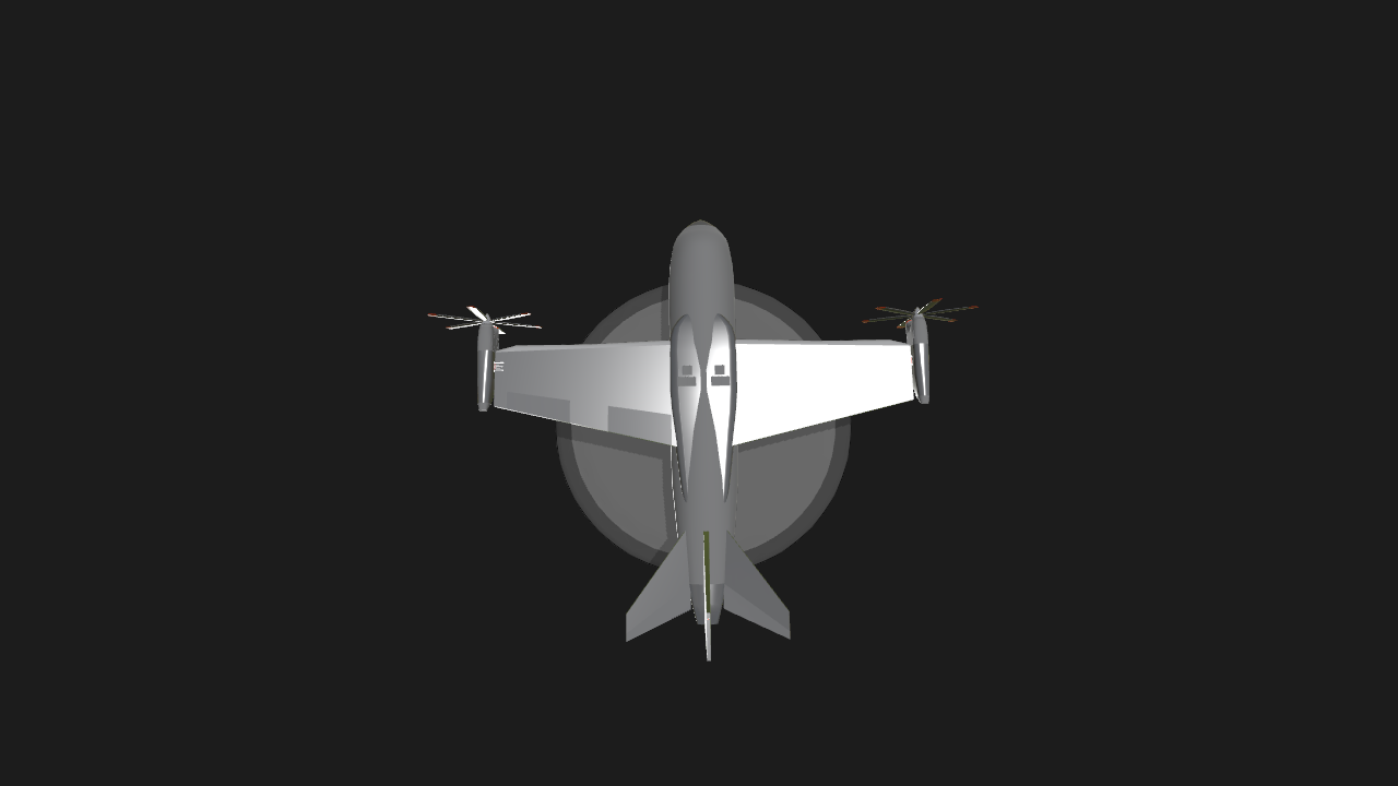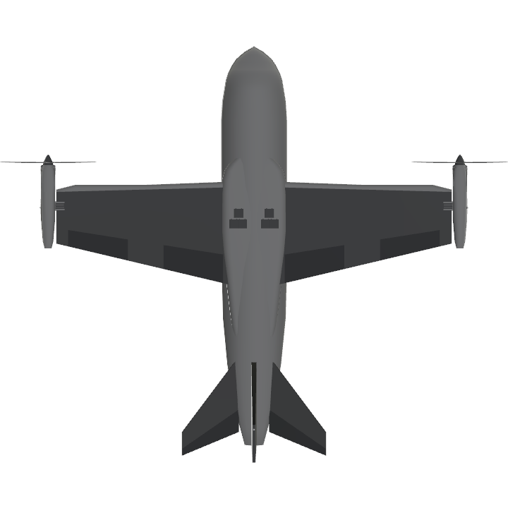My first VTOL prototype. Has two turboprop engines designed to be acting as the elevators as well. Aircraft is a concept used for private transport. Crusing speed is 300km/h. To use VTOL set angle to roughly 85 degrees. Really heavy design but can fly well with correct technique. The futuristic cockpit design works the same as the f-35 helmet, allowing pilot and copilot to see through the aircraft for vertical landing.