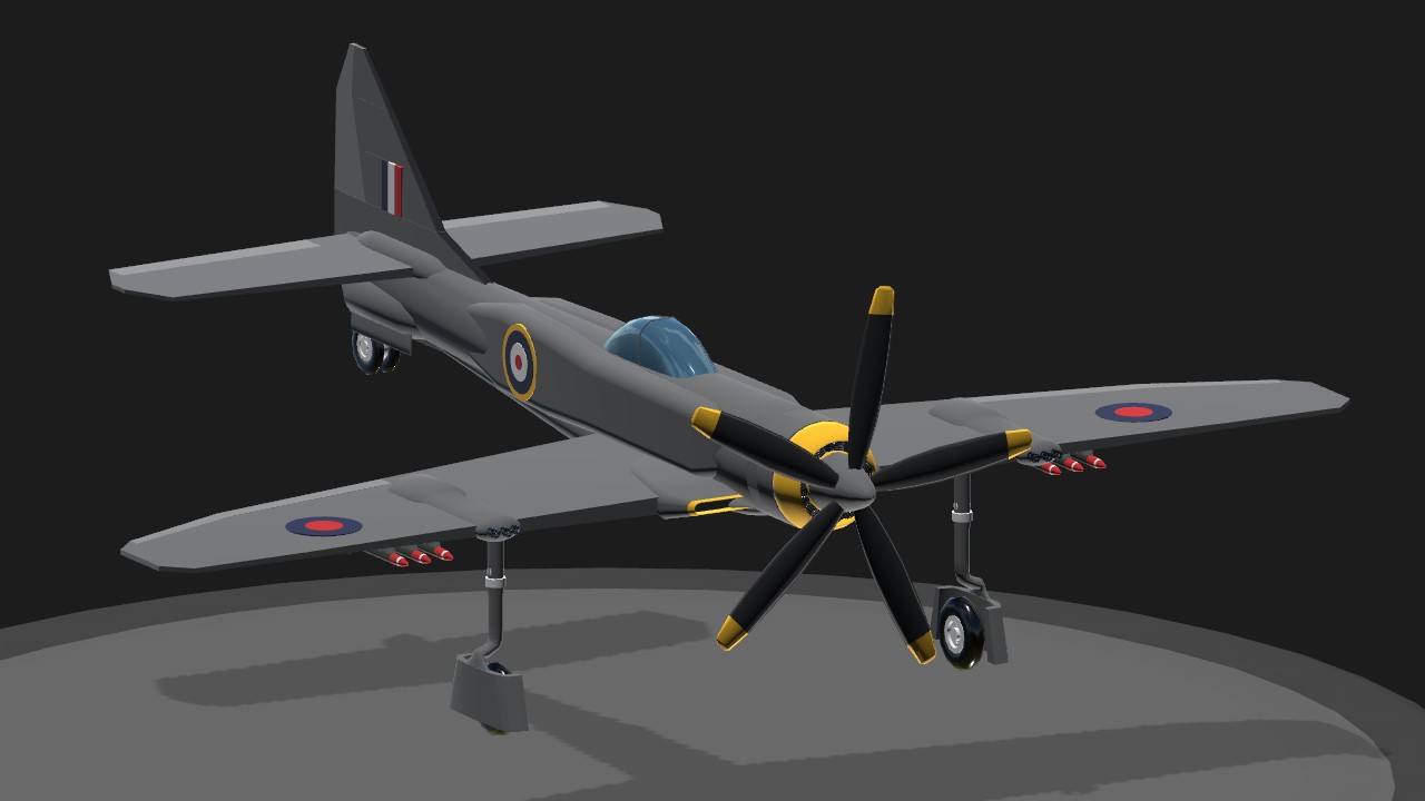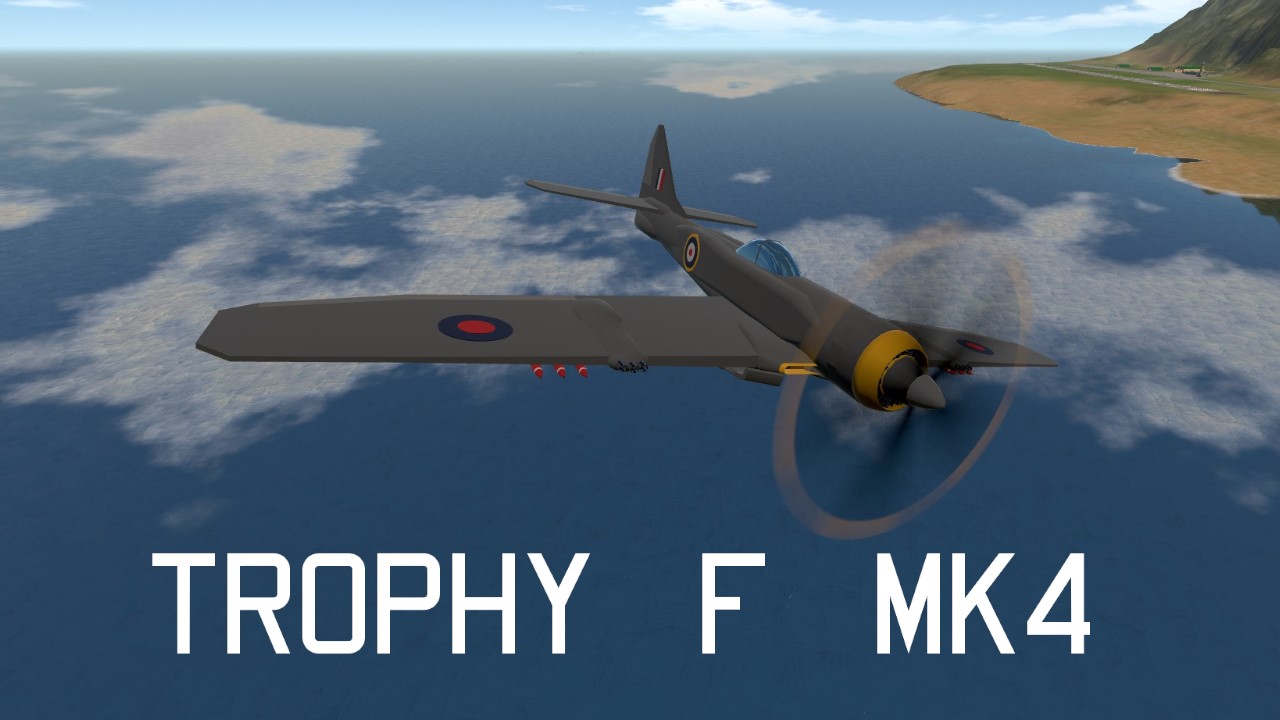 The Trophy F Mk 4 new variant of the Trophy Mk 1 with slight imperfections and errors fixed. The Trophy F Mk 4 is a Fighter/Interceptor Aircraft fictionally developed and produced by Supermarine to operate with the Royal Air Force. Its primarily designed for air-to-air combat and to establish superiority over an airspace and to intercept bombers or reconnaissance aircraft.