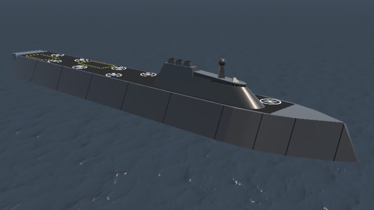 The Omicron class is a stealth Landing Helicopter Dock(LHD) designed to replace the old American Class LHA. Larger then the America class, it's capable of carrying the large Magni class LCU, which isn't able to fit inside Xi and Chi class vessels. It's also a standout among aircraft carrier-like ships for having a island sitting far up front on the hull.