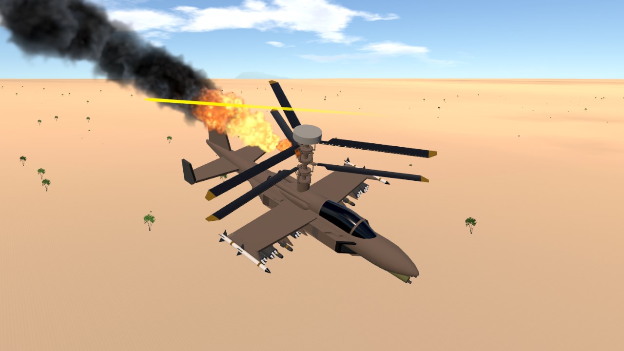 the AH-2B is an "advanced" attack helicopter designed to be cheaper then an AH-1. like the YAH-2B it uses a turboshaft and 2 water cooled 50 cals (which fires way to fast that is a mistake) this thing was designed to fight in desert conditions and fires Incendiary rounds. its armed with rockets and missles.