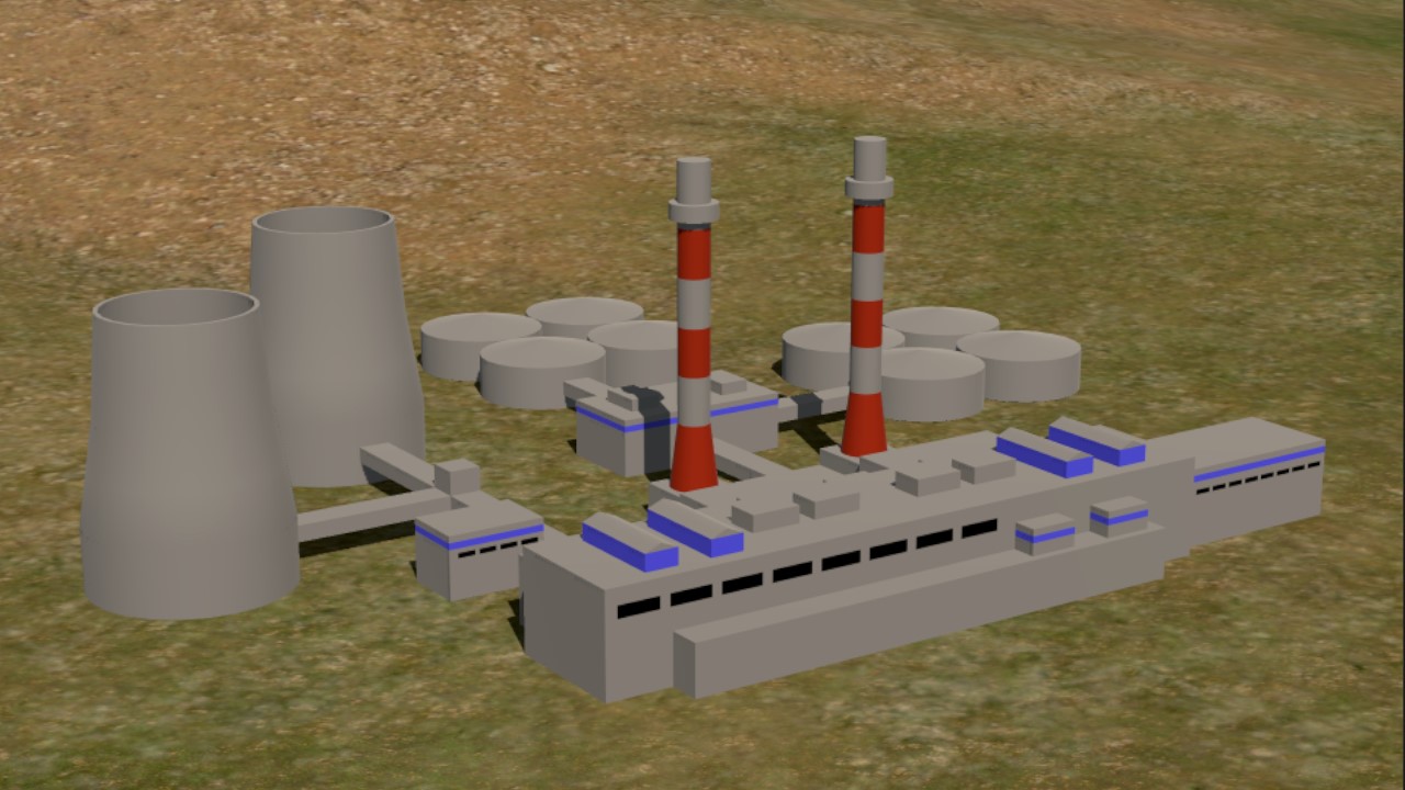 The power plant is a decoration/target for your, um... activities. Drag calculation is disabled for all (almost) parts, so despite its size, it will not cause serious lag.