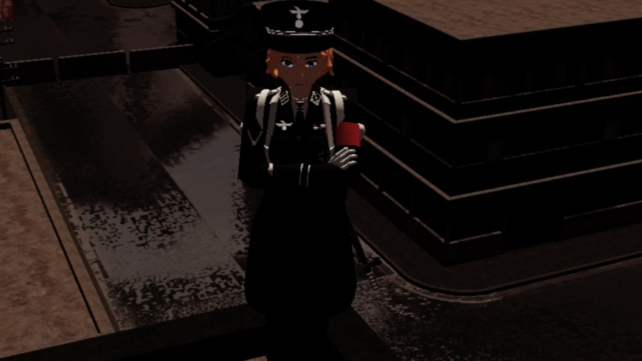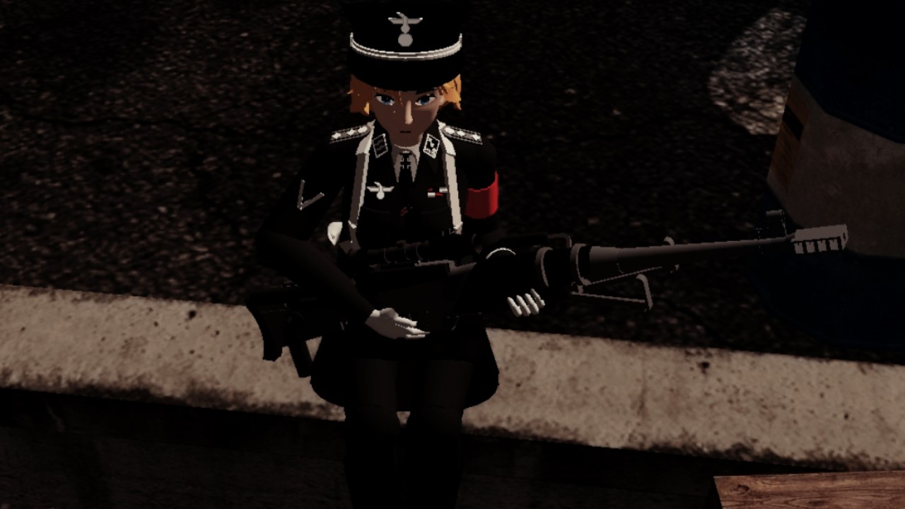 Her military uniform is modeled after an SS-Sturmbannführer (Major).