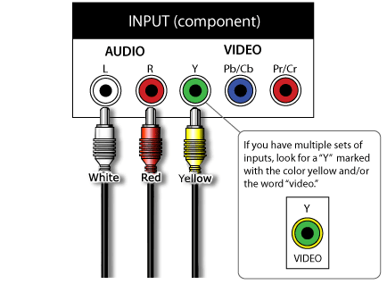 My Flatscreen TV has 5 ports! Enough for a component cable! (image shown is from nintendo showing a composite, but in the thing it shows enough ports for component)